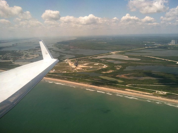 “Gabrielle landed safely in Florida. Smooth flight with STS 134 astronaut Greg Johnson’s family,” read the post on the Arizona congresswoman’s Facebook page, which includes a dramatic aerial photo of Endeavour on its pad (left). “Thanks to NASA for great fly by of launch pad.”
